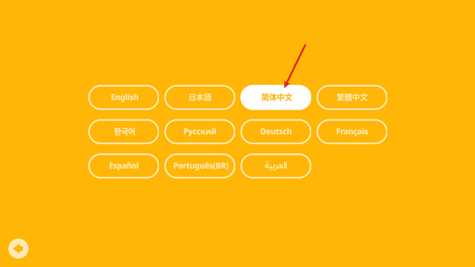 3、进入后,选择简体中文,随后返回就能成功切换。