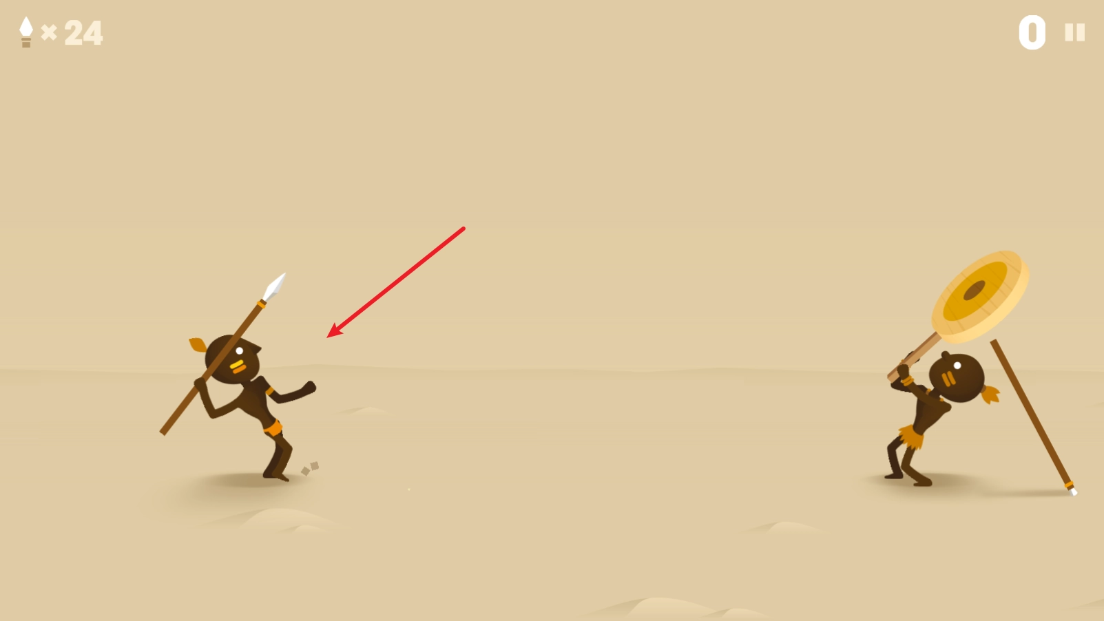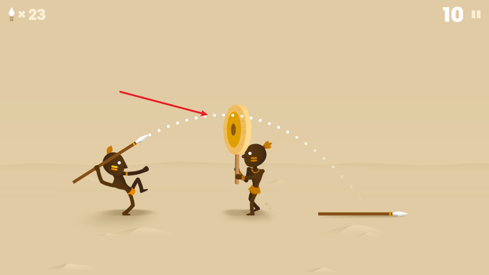 2、点击矛就会出现辅助线,松开后就会将矛投出。