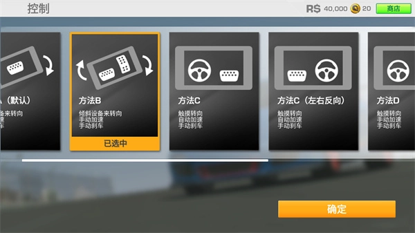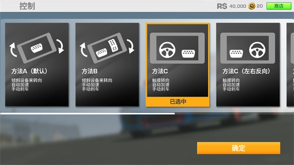 1、选好一辆车子后,右侧的方向盘用于操控车辆转向,左侧的按键则可实现加速、减速等功能。