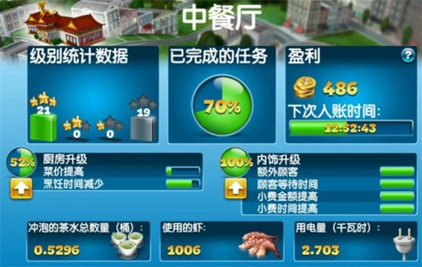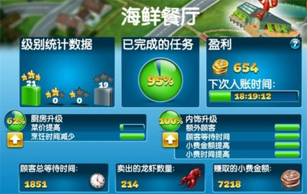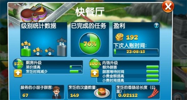 一定要记得升级餐厅,这样不仅能获取更多食材,还能制作出各式各样的美食,操作起来非常简单。