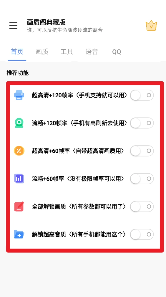 画质阁典藏版真的特别实用!之前明明能开高帧率却被限制住,现在终于能解锁了,画面流畅丝滑,玩游戏时用它太顺手了!