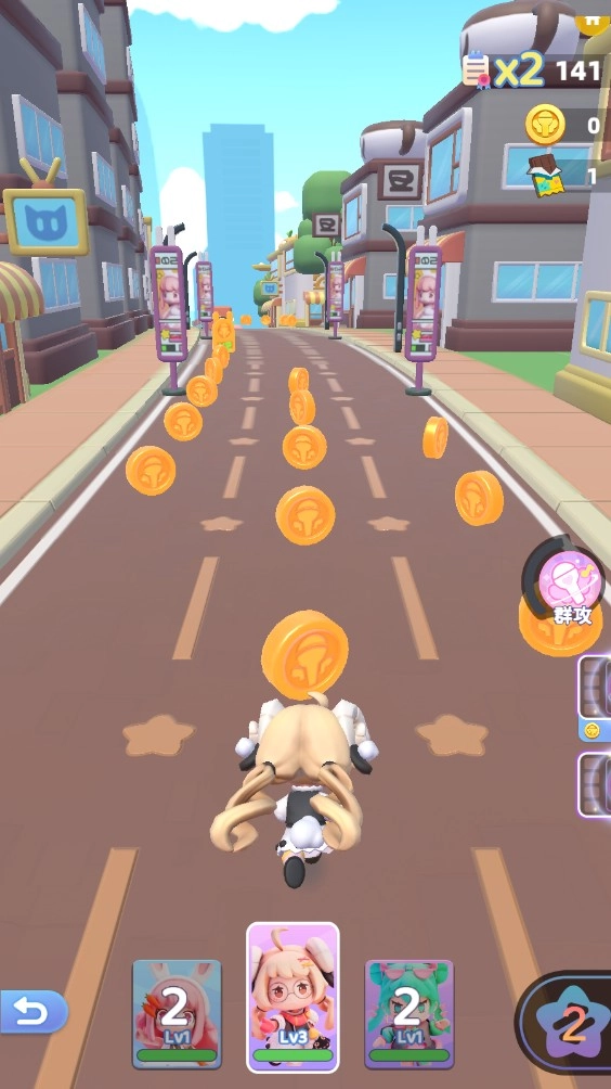 2、在界面中可以添加组队3个迷你少女进行跑酷