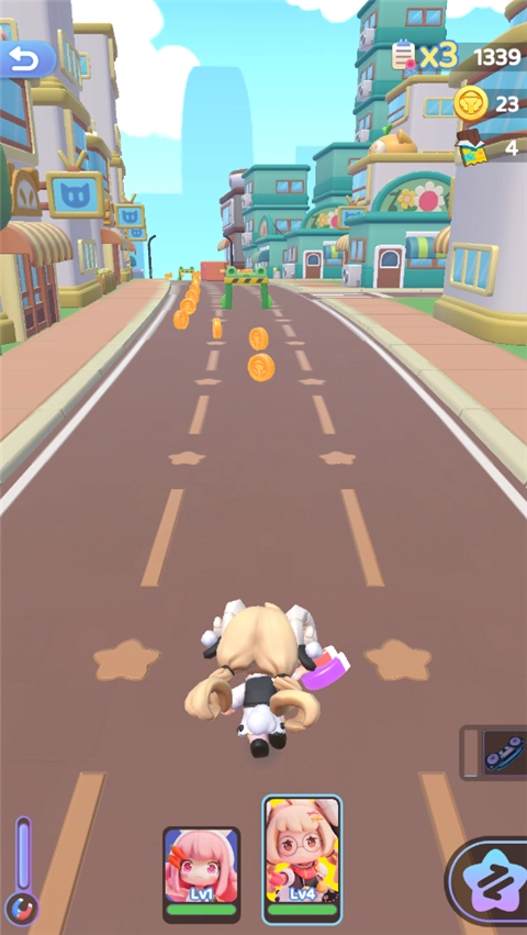 8、点击界面上的“go”即可进入正常跑酷模式,玩家能切换3个不同角色参与跑酷,且每个角色的技能都各有差异。