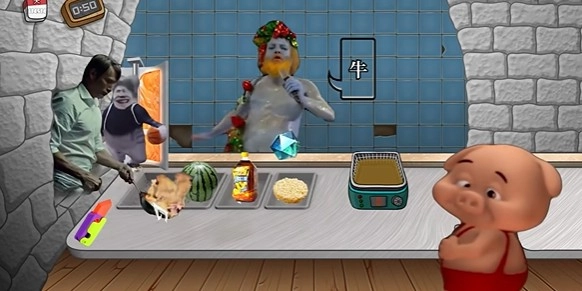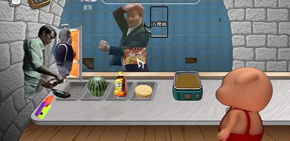 1、瞧瞧是谁在掌勺,烤肉被换成了坤坤,食材也做了经典替换,西瓜、冰红茶、方便面之类的都用上了,这是在为即将到来的明星做准备呢。