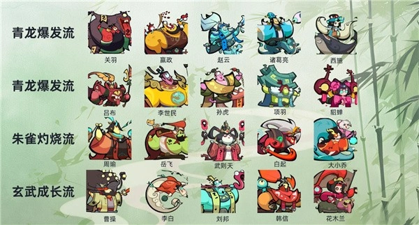 3、朱雀灼烧流:周瑜、岳飞、白起、武则天以及大乔小乔。