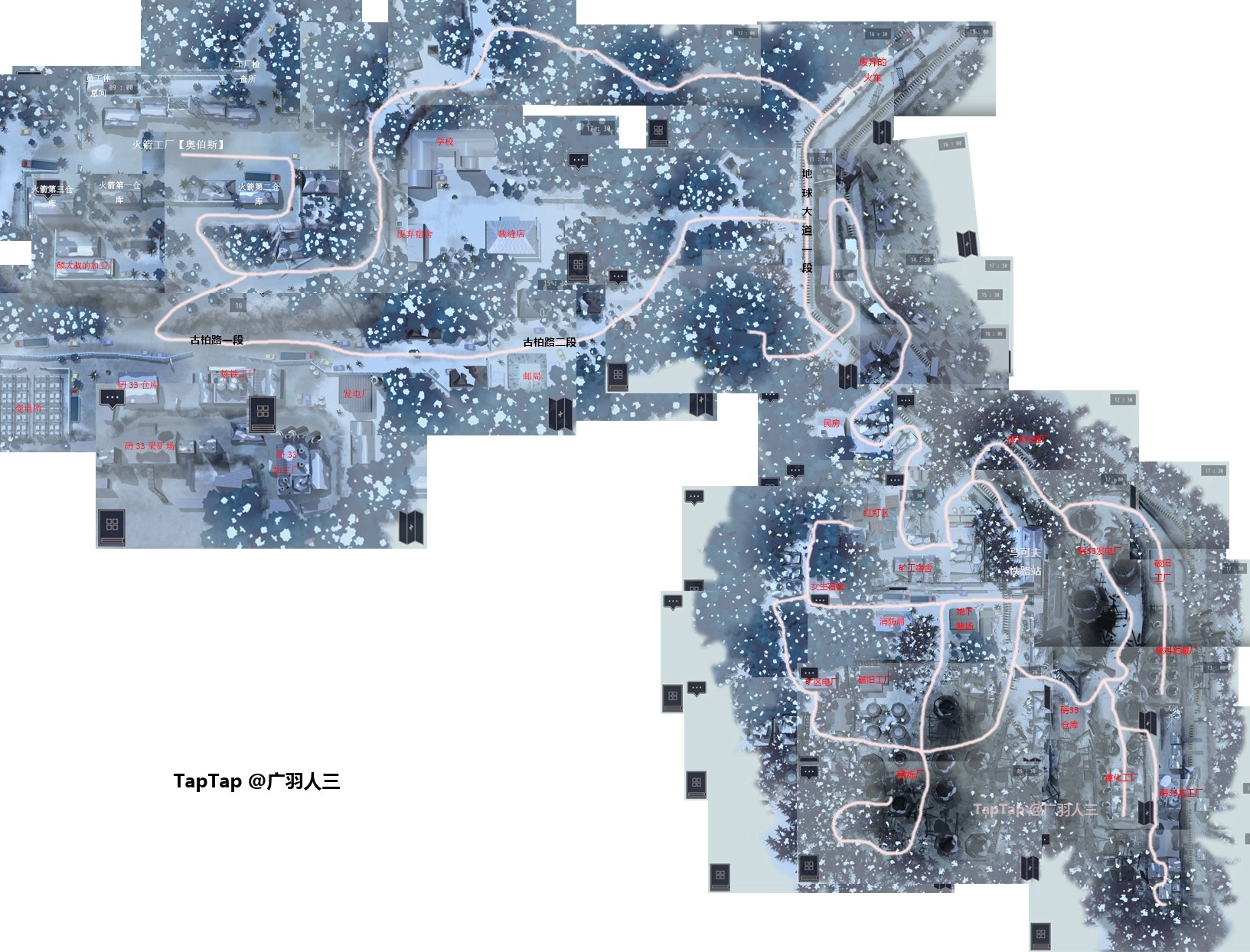 马可夫小镇、奥伯斯火箭工厂周边区域,还有大角路地图