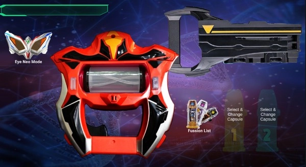 3、接着把奥特之王的胶囊放进武器里,按下中心按钮就能完成变身啦!