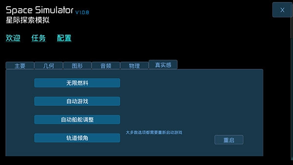 6、第一次游玩建议在菜单配置界面中开启全部的真实感选项,以熟悉的各项操作。