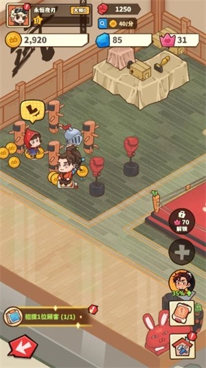 5、当顾客头上出现黄色图标时,玩家需要前去接待,完成训练后即可获得金币。