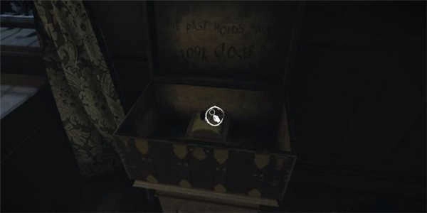 接着前往蜡烛正对面的宝箱,在锁头上输入密码,就能打开宝箱,获取第一件怨念物(1)——蓝宝石戒指。