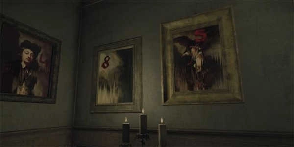 在蜡烛上方那三幅尺寸不大的油画上,会从左到右依次显示出“4、8、5”的字样(需要注意的是,不同的存档对应的密码可能不一样)。
