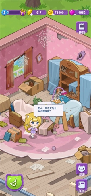 3、完成日常任务、达成成就可获取奖励,用来装饰并扩建庇护所,还能认识更多新的猫咪。