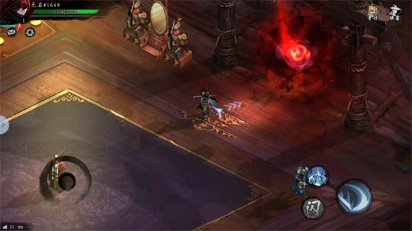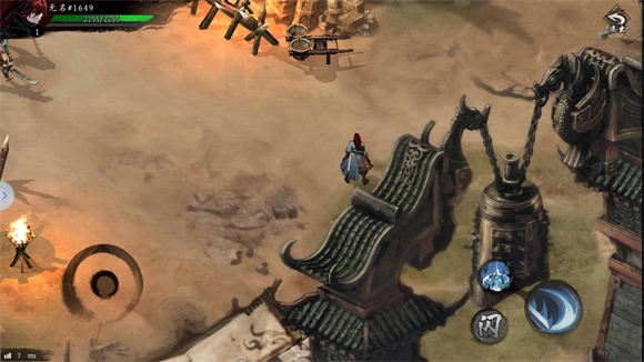 3、进入地图后,左侧的按键用于控制角色移动,右侧则分布着角色的技能、攻击以及闪避按键。