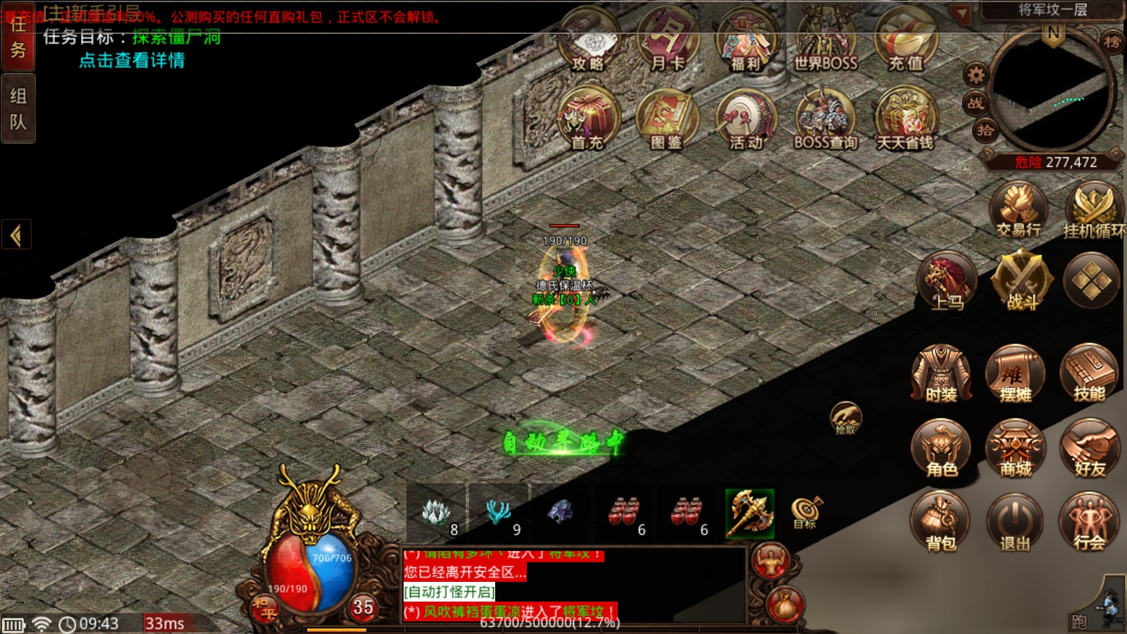 3、逆魔之王、禁地之王、禁地魔王、通天教主等众多经典BOSS等待你的挑战,充值卡、极品装备爆率超高,掉落不停。