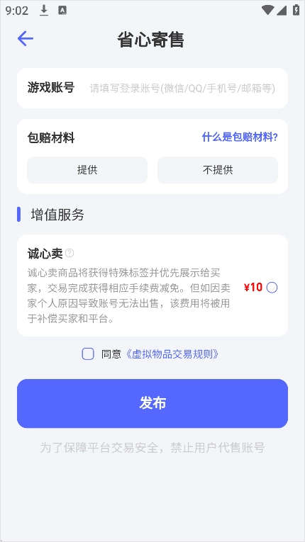 平台上所有账号均需通过严格审核方可发布,用户必须完成实名注册才能使用,以此保障交易安全。此外,除账号交易外,平台还支持角色交易、装备道具积分兑换等多种交易功能,专业客服团队将为用户提供全天候的咨询解答服务。
