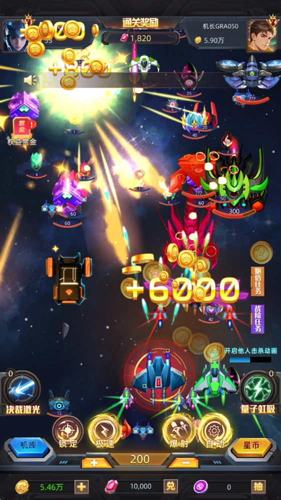 这是一款解压又有趣的飞行射击游戏,畅快的弹幕射击、炫酷的火炮特效,都能带来极具冲击力的视觉体验,让你尽享无比解压的割草杀怪乐趣!游戏内还设计了海量关卡等待玩家挑战,每一关都准备了丰厚奖励,通关即可获取!