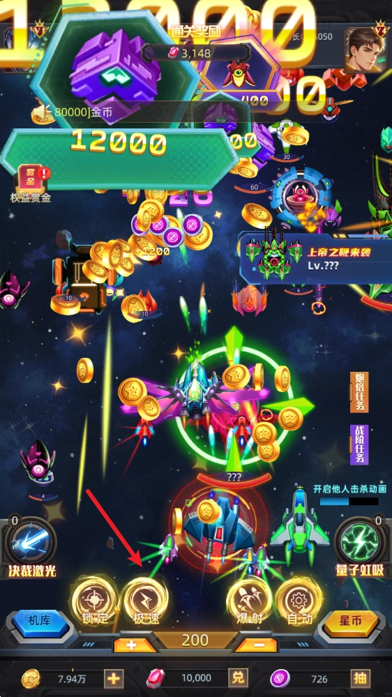 2、下方还能开启极速、狂暴、自动等功能,助你拥有更强劲的火力。