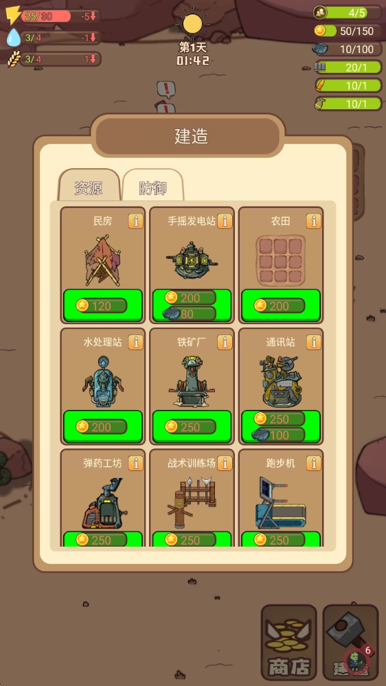 3、除了资源之外,还得建造防御设施,用它来抵挡僵尸的入侵。