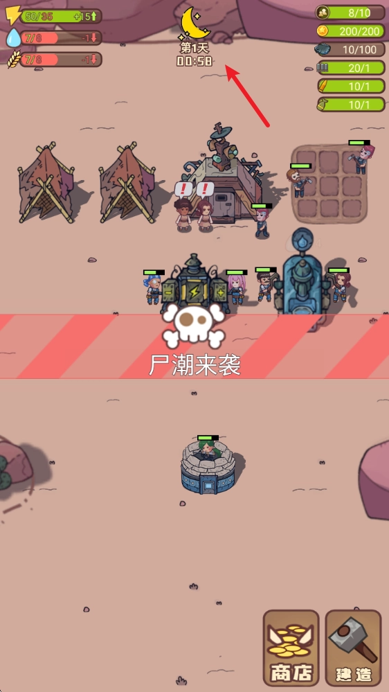 3、夜晚会有持续涌来的尸潮,玩家需要合理布置防线,安排居民驻守,打造出坚不可摧的防御体系。