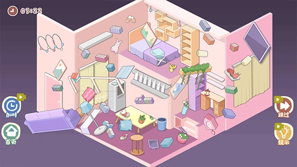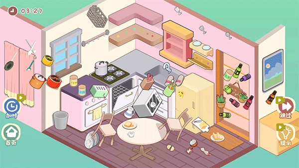 3、画面采用卡通风格呈现,整体氛围温馨可爱,把物品整理好后,望着眼前整洁的场景,心情也会跟着变得愉悦起来。