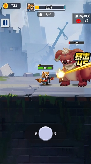 《无人黄昏》采用经典的横版射击玩法,玩家需在危机四伏的关卡中推进,运用各类枪械与敌人展开对抗。每一次射击都需精准把控,毕竟在这个末日世界里,生存是唯一的核心目标。游戏还提供了多样的武器与装备供玩家收集,你可以依据自身的战斗风格和实际需求进行选择与升级。借助养成和升星系统,还能让你的小浣熊伙伴变得愈发强大。