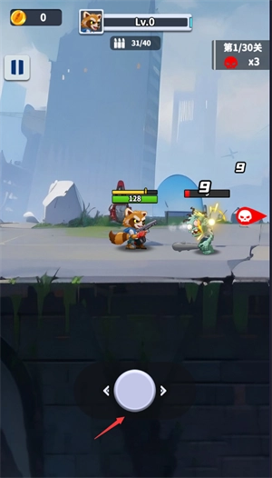 1、玩家需要滑动摇杆来控制角色进行左右移动