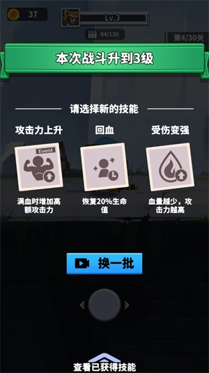 2、角色升级后,可从三种特性里挑选一种以增强自身能力