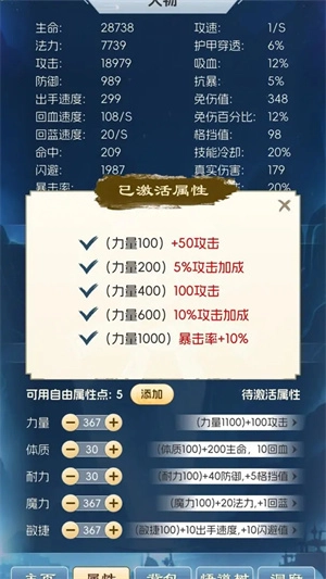 1、开局时把属性刷新到力量和敏捷都达到28以上,魔力属性没什么用,其他属性保持中等水平就行,不需要上仙体和任何金色血脉的开局设定。