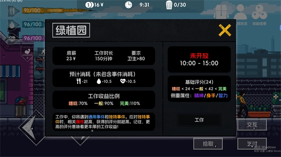 工作时会消耗额外的属性,因此在开始工作前,需要留意这三种属性是否足以支撑工作的消耗。不过,由于事件结果也会对属性造成影响,所以这种判断并不一定完全准确。