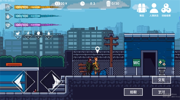 2、进入夜晚(21点后)会大量消耗属性,要是在户外的话,很可能会在黑夜中倒下,因此建议选择待在收容所或者宾馆。