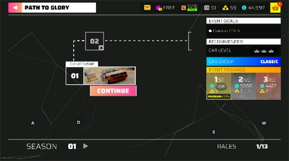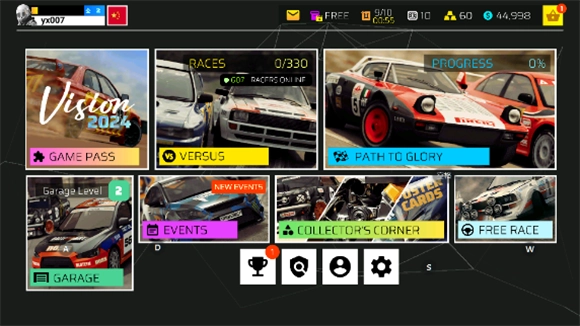 1、其中并没有直接解锁全部车辆,需要玩家自行使用货币购买,点击game pass即可进入比赛。