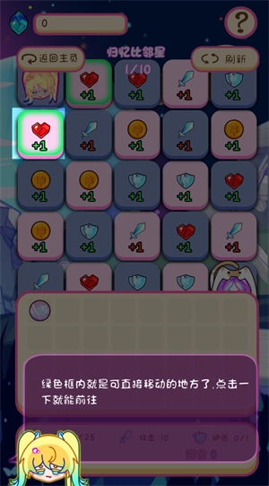 3、格子移动机制:玩家在5×5的地图中通过点击格子来移动角色,需运用策略规划行进路线,完成资源收集与战斗任务。