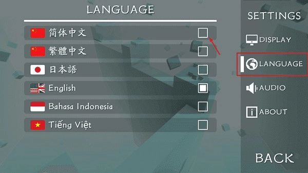 2、玩家可在设置界面将语言切换为中文,以获得更顺畅的游戏体验。