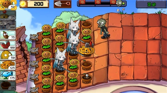 2、的前几关和原版相同,都是消耗阳光种植植物来抵御僵尸。