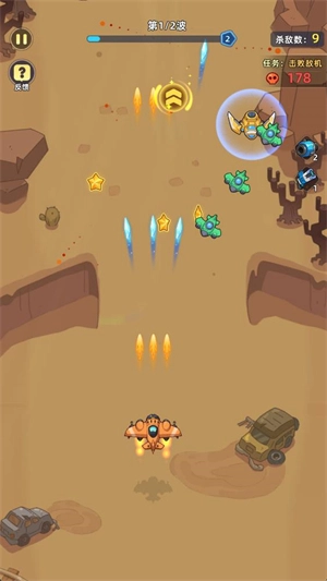在游戏里,玩家将操控战机消灭关卡中的敌人。游戏设有多个关卡,每一关都需消灭指定数量的敌人才能通关。玩家可以拾取不同道具提升火力,完成更多挑战任务来增强战斗力,还能获取各类装备强化战机火力,通过不断完成任务打造出最强战斗机。