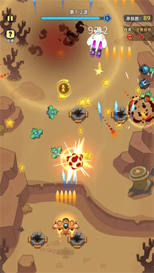 3、正式开始后,滑动屏幕就能操控战机移动,战机会自动发起攻击,一旦子弹命中敌人就会对其造成伤害。