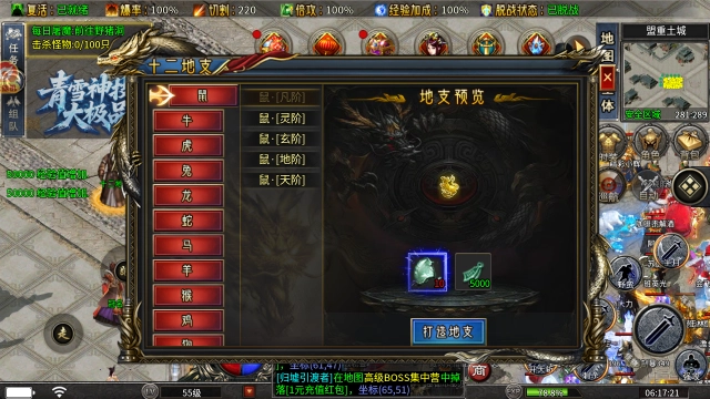 2、十二地支:消耗刀币与法宝碎片就能打造十二地支装备,每个生肖都具备凡、灵、玄、地、天五个等级。