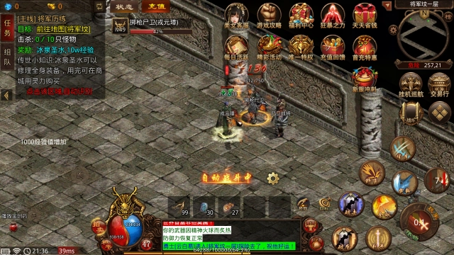 1、前往“经典地图”打怪升级,快速更换新手装备以更快击杀BOSS,轻松获取材料、装备、元宝等资源。