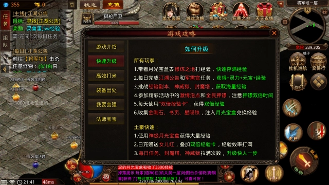 4、前往[封魔塔]能够快速升级,在这里可以打出所有装备,收取玩家打满的[月光宝盒]还能获取大量经验。