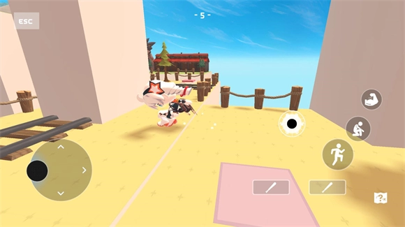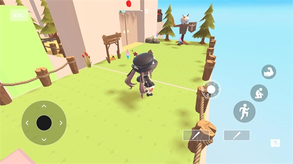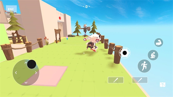 进入地图后,左侧轮盘用于操控角色移动,右侧轮盘负责控制表情,其余按钮则分别对应攻击键、跳跃键和蹲下键。