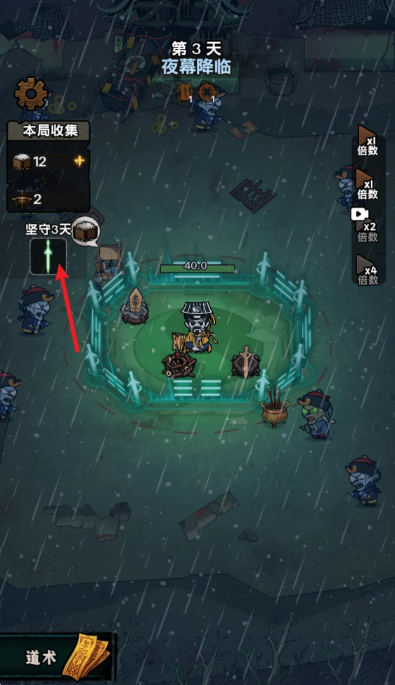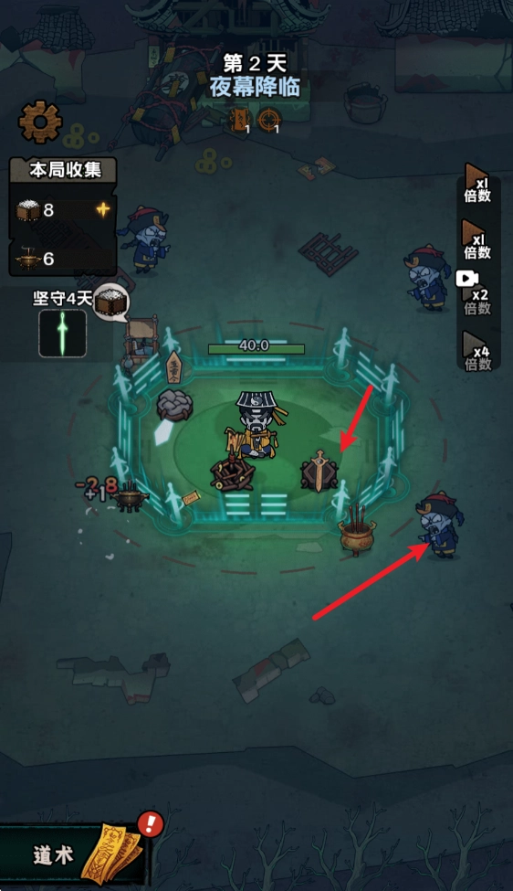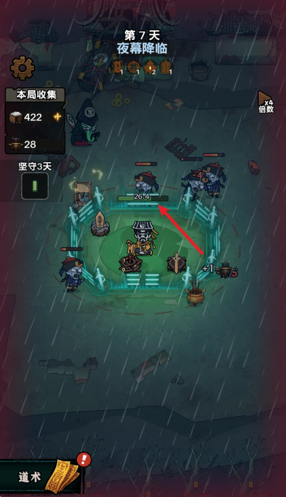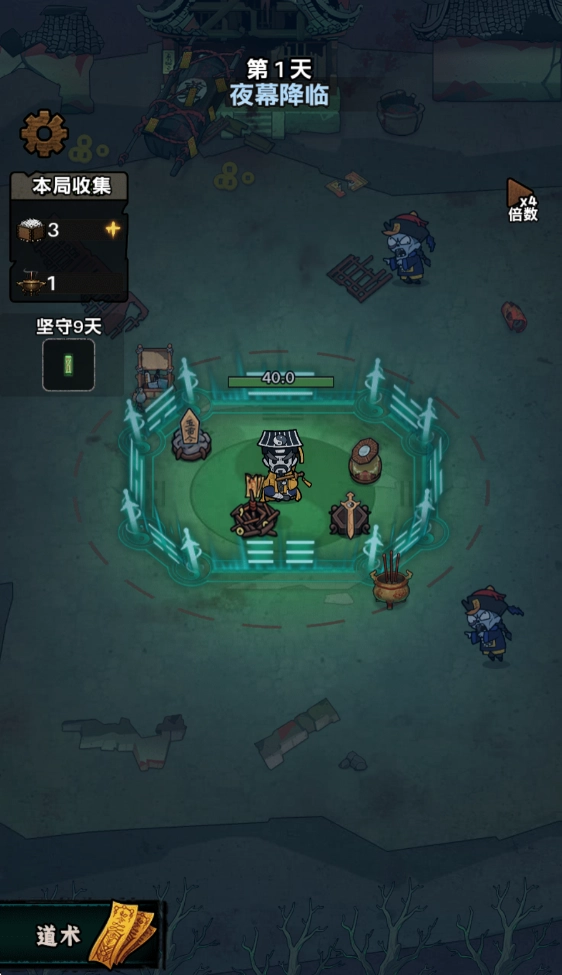 夜幕降临后,僵尸、妖怪这类敌人便会前来袭击我们,我们得借助布置好的道术来抵御它们的攻击。