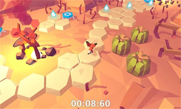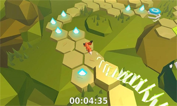 小狐狸的玩法超简单,道路是由六角形小块拼起来的,控制方式就左右两个方向——点屏幕左边,小狐狸就左转;点右边,它就右转。换句话说,同一个方向连续按六次,小狐狸就能在六角形上转一圈,回到最初的朝向。路上那些小光点看到没?收集它们可是任务,得把一张图里的光点全收完才行。有时候光点分布得七拐八绕,这时候就得秀点灵活操作了。因为路况总在变,手指得一直点屏幕,反而让游戏多了不少乐趣。(对了,狐狸叫超萌的,听着就喜欢~)