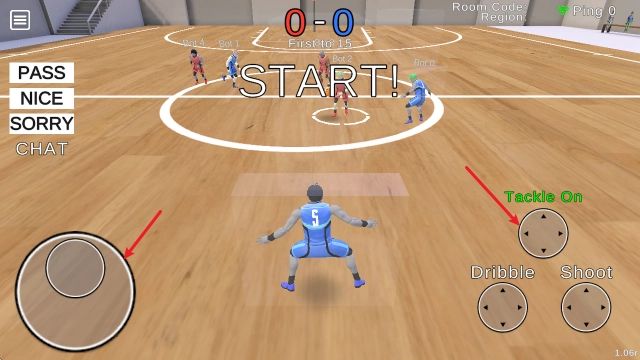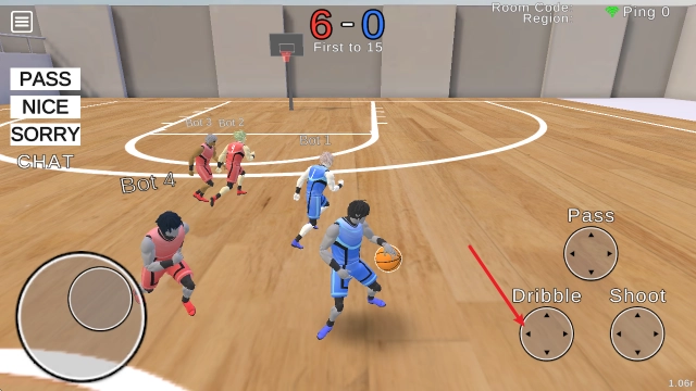 3、持球后,点击右侧的Dirrble按钮即可完成运球过人操作。