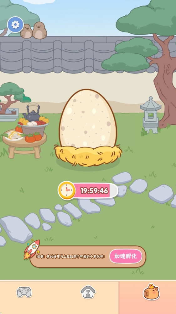 6、我们可以用闯关的方式加快孵蛋速度,等蛋孵化出来,就能和宠物互动啦!