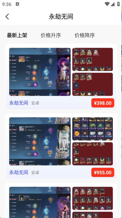 4、点开想要购买的账号类型,就会出现很多的账号。