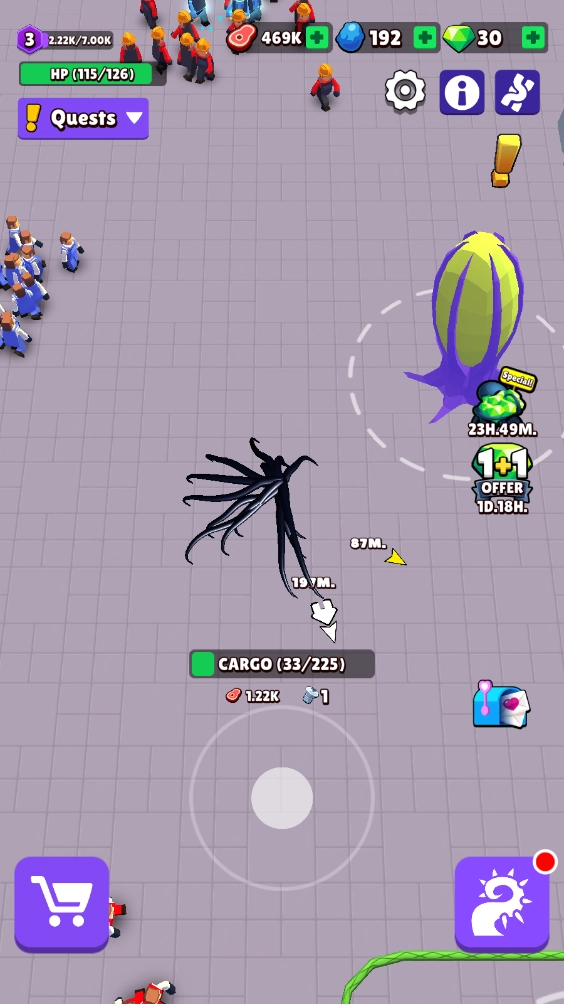 3、完成更多任务,收集尽可能多的资源,持续提升自身各项能力,以便能够吞噬更多敌人!