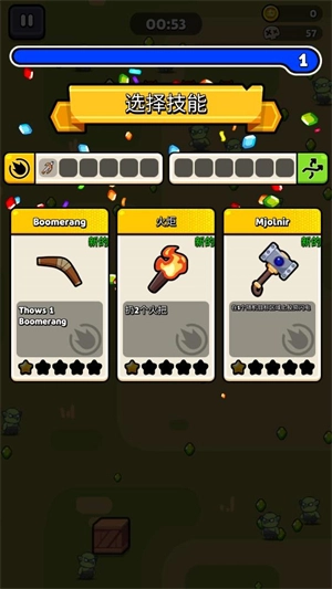 3、每次升级都可以从三个技能里选择一个强化自己。