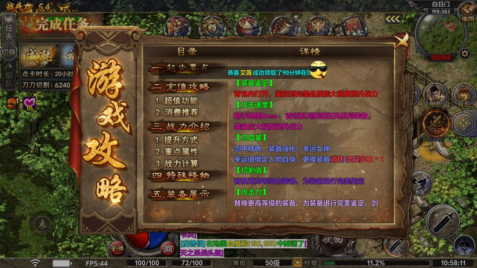 2、【攻击速度】:新手地图中的Boss、首领系列怪物会掉落狂风系列装备,装备该系列装备后可大幅度提升战力。