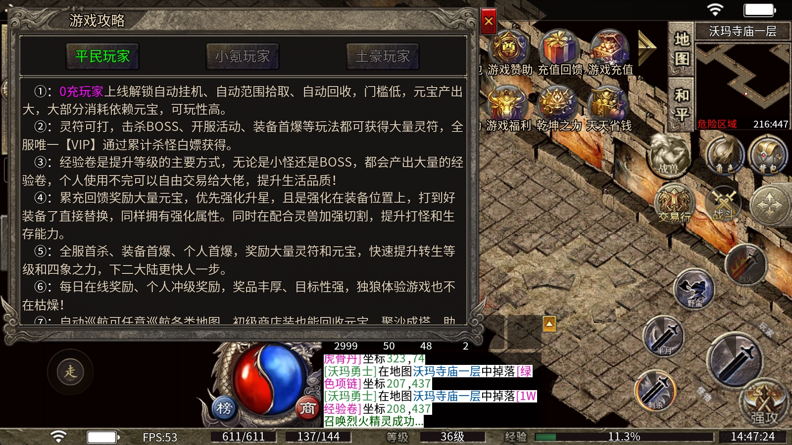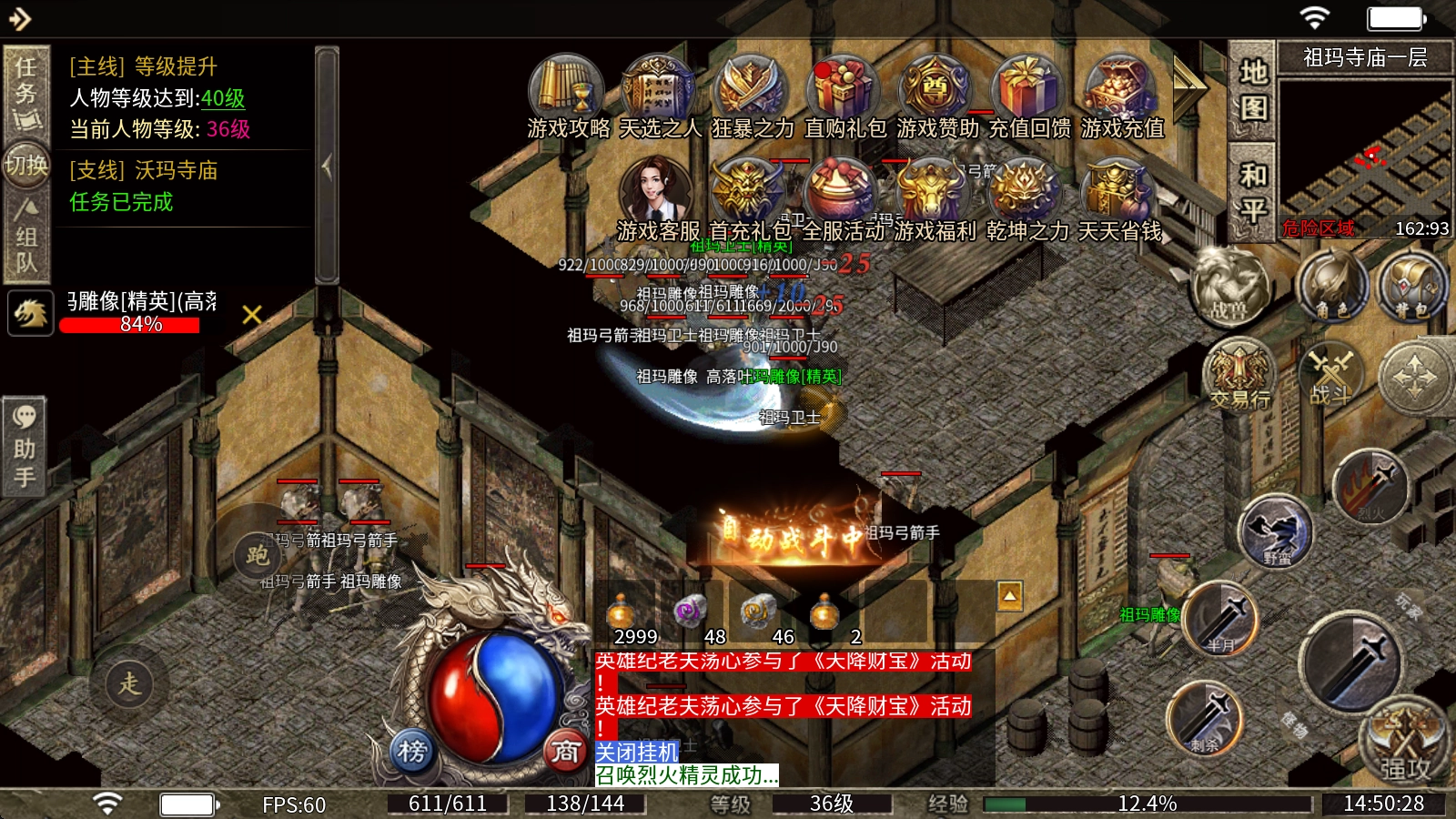 4、累计充值的回馈奖励包含大量元宝,建议优先用这些元宝进行装备位置的强化升星;后续打到更好的装备直接替换时,原有的强化属性也会保留。同时搭配灵兽系统增强切割效果,能进一步提升打怪效率与生存能力。