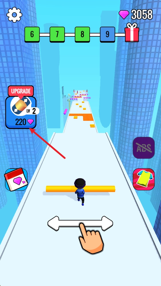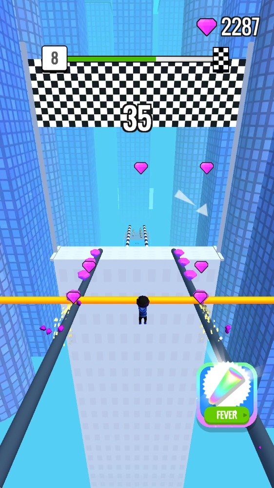 1、收集更多钻石来提升自身能力,这样你就能在关卡里跑得更快更远,棍子也能持续变长。